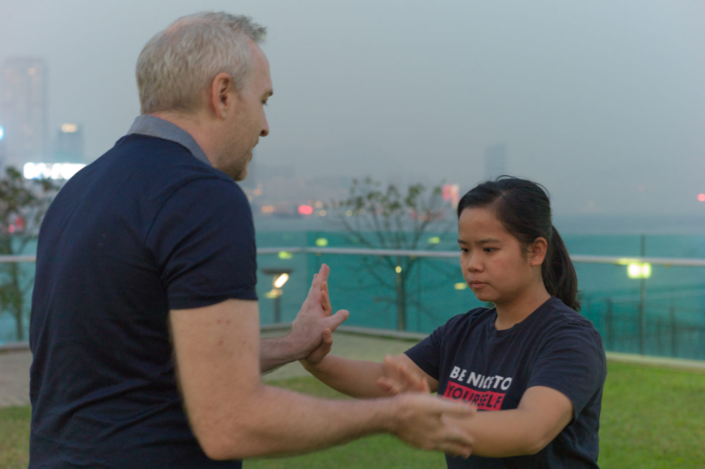 One lovely afternoon I met a couple of friends for some additional pre-class wing chun training. We were in Tamar Park with the most incredible view of the water. There was a cool breeze and we were going to practice some chi sau and exchange ideas on internal martial art applications.